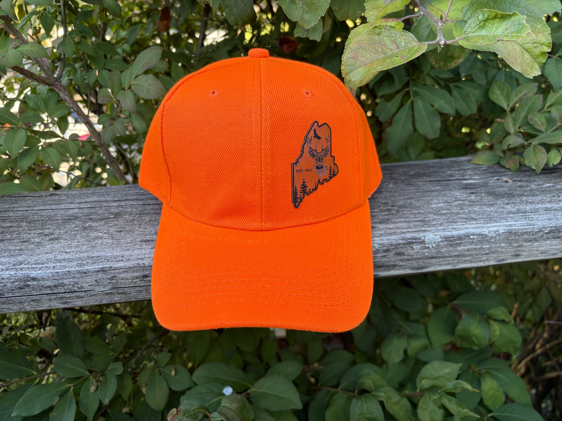 Elevate your hunting game with our Maine Hunting Hat! Featuring a stitched patch of a majestic whitetail deer, this blaze orange hat is a must-have for any hunting adventure. Stay safe and stand out in the wilderness while representing your love for Maine. Stay confident and stylish with our Maine Hunting Hat!
