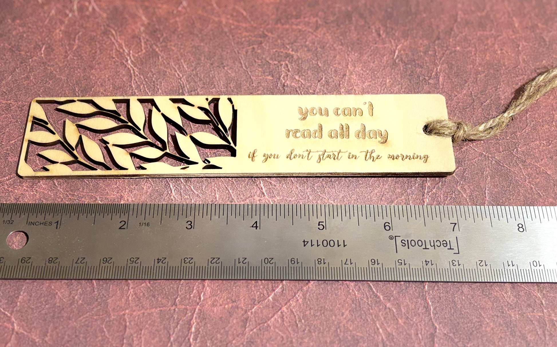 This expertly crafted wooden bookmark is handmade and laser engraved with the motivational phrase, "You can't read all day if you don't start in the morning." Finished with a natural hemp twine, it combines rustic charm with practical design, making it an ideal companion for avid readers who appreciate quality and inspiration.